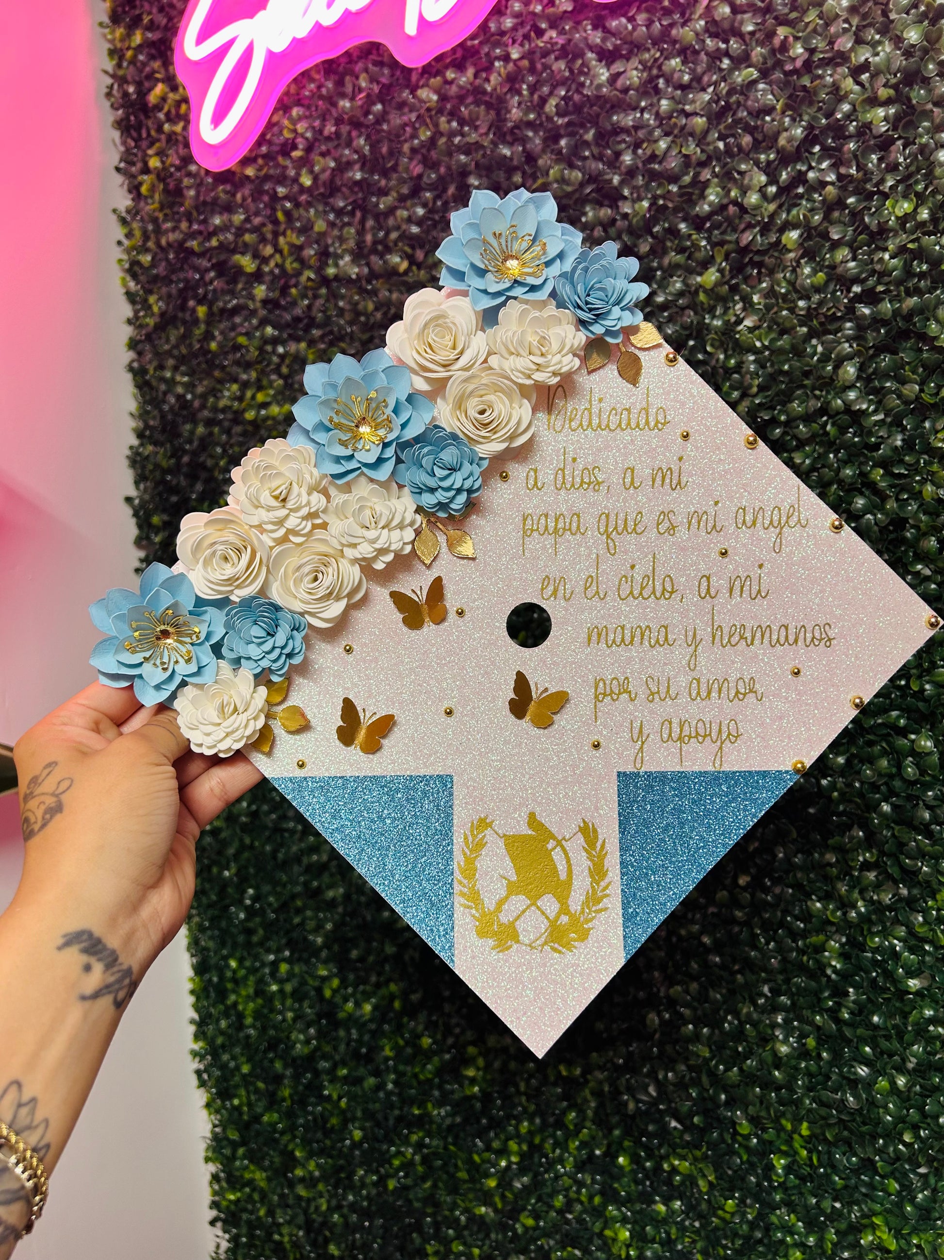 This listing is for a handmade graduation cap topper as shown in picture. I do offer custom orders so please message me if interested in a custom design. Text can be changed if wanted (please send me a message or add details in notes section)
