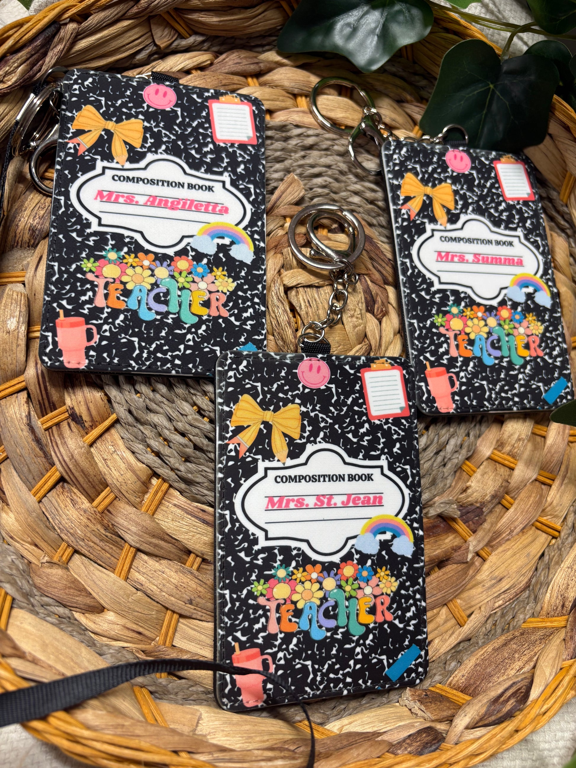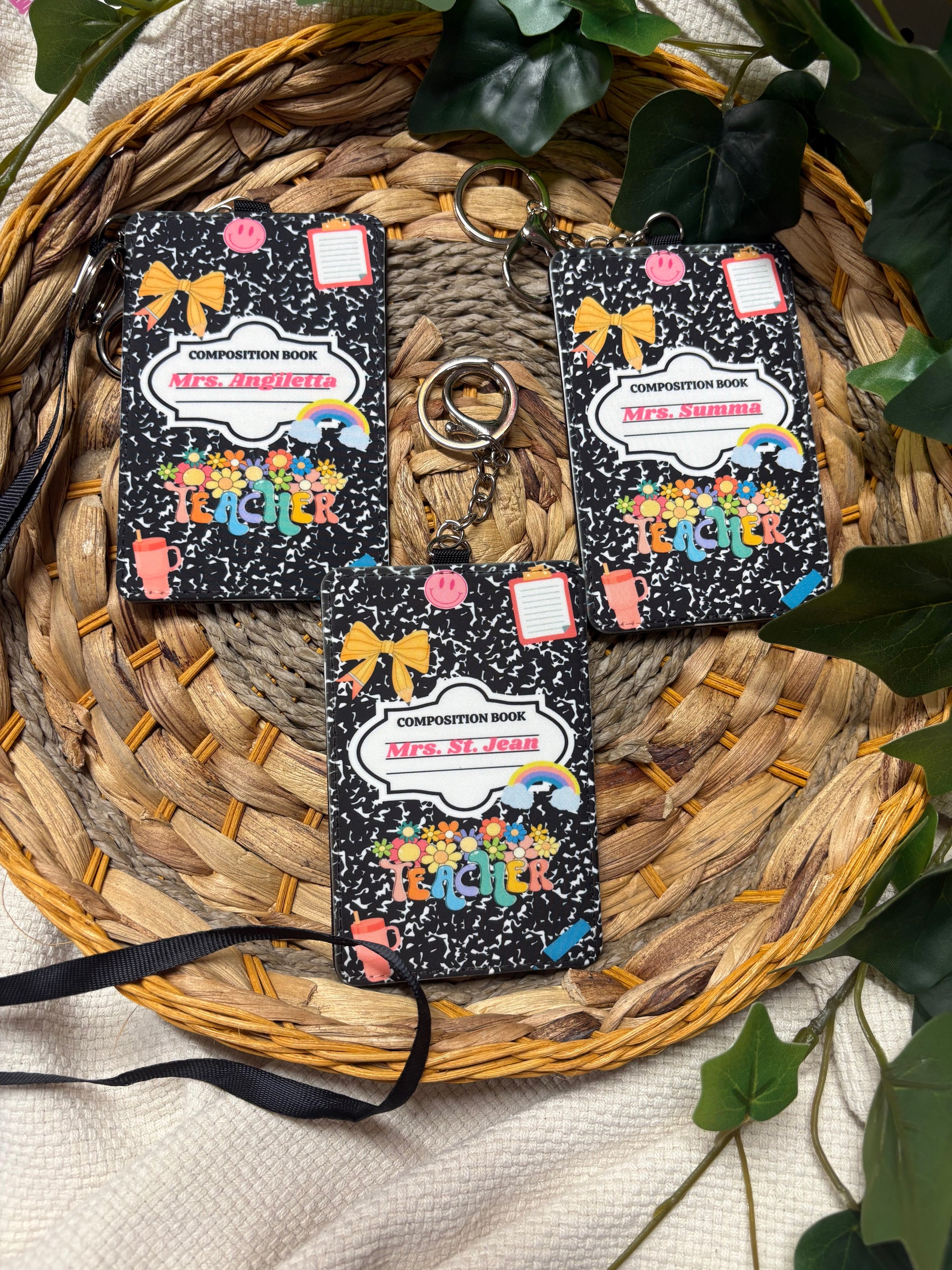 Keychain/Lanyard can also be used as a small wallet. There are two slots in the back that can hold a card or badge. Each cardholder measures about 4.13 x 2.95 inches/ 10.5 x 7.5 cm, making them the appropriate size for work IDs. The keychain itself measures approx. 3 inches x 4.5 inches.